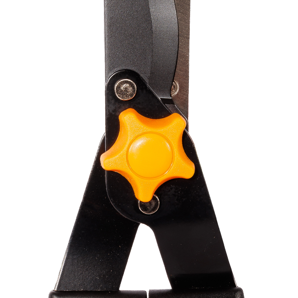 Леза зі сталі SK5 пройшли термообробку, що забезпечує високу твердість, гостроту та тривалий строк служби. Тефлонове покриття знижує тертя, запобігає прилипанню соку рослин та захищає від корозії.